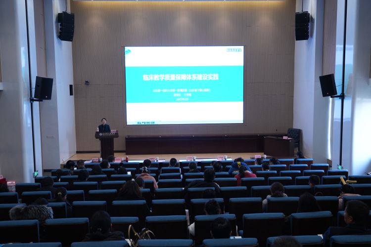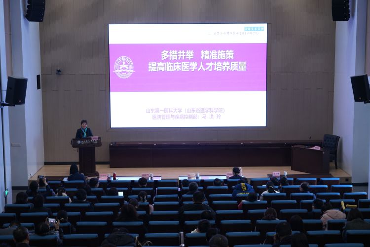 在学术讲座环节,马洪玲作学术报告,结合多年教育管理经验,深入探讨了提升临床医学人才培养质量的有效途径,强调应以学生为中心、以能力为导向,持续优化教学内容与方法,致力于培养具备扎实医学知识和良好临床实践能力的医学人才。山东第一医科大学第一附属医院(山东省千佛山医院)教育处处长亓秀梅分享了在临床教学质量保障体系建设方面的成功经验和具体做法。