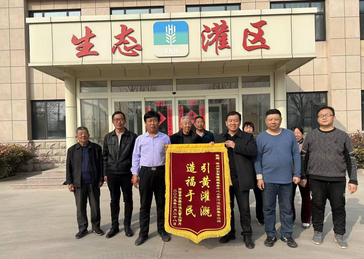 滨州日报/滨州网讯 2月28日,阳信县水落坡镇北曹管区的赵宝升书记带领辖区村民代表到小开河灌区孙集管理科送来一面“引黄灌溉、造福于民”的锦旗,用最质朴的方式表达着对“及时水”的感激。
