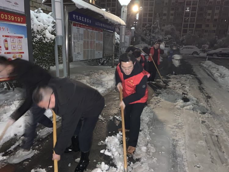风雪无情,社区有爱。在这场暴雪“大考”中,时代社区党员以行动践初心,用担当暖民心,不仅扫出了一条条“平安路”,更架起了党群连心的“暖心桥”。
