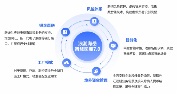 浪潮海岳智慧司库7.0应势升级,围绕风控、智能化场景应用、境外资金管理、工厂模式以及银企直联等方面全新升级,助力企业建设一流司库管理体系,实现高效、智能、全球化的资金运营与管理。