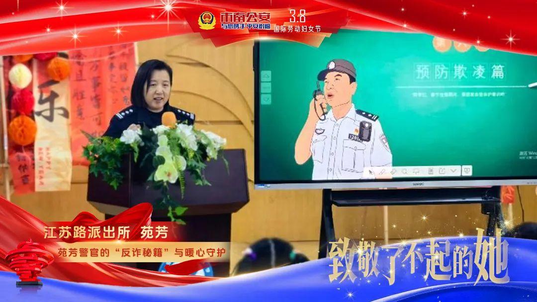 在江苏路社区,苑芳警官被大家亲切称作“苑姐”。安全是苑芳的心头大事,校园则是她的重要“战场”。反诈宣传时,她把复杂的诈骗手段化作生动的故事,让孩子秒变反诈“小卫士”;反欺凌宣传中,她以知心大姐姐的身份,教会孩子应对之策;面对网络谣言,她结合热点,传授辨别方法,让大家保持理性。苑芳就像社区的“安全守护星”,用耐心、细心和责任心,为居民撑起安全天空,诠释女警担当,书写巾帼华章。