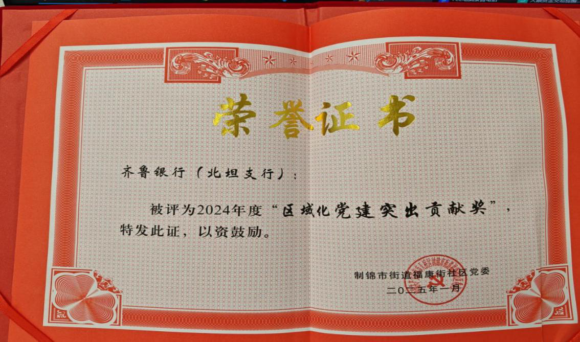 济南北坦支行以党建为引领,全面落实“社区共建共享”理念,打造百姓信赖的“市民银行”,扎根制锦市辖区,本着“用心服务、关注社区、关爱群众”的原则,不断探索多元化的服务模式,长期以来与辖内福康社区携手开展了一系列卓有成效的共建活动,荣获制锦市街道福康社区“区域化党建突出贡献奖”称号。
