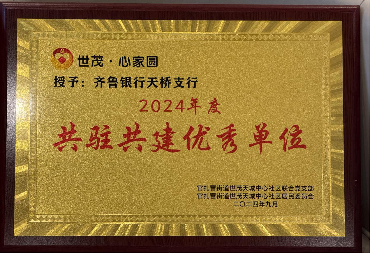 济南天桥支行以金融专业优势为抓手,助力社区经济发展。该行与社区紧密相连,通过提供金融服务、普及金融知识、推动社区经济发展以及参与社区建设等一系列举措,深入了解小微企业经营特点与资金需求规律,创新推出了一系列丰富多样的金融产品,支行派驻客户经理为社区内企业提供“一对一”服务,帮助他们解决融资难题,提升经营管理水平,实现快速健康发展。该行荣获官扎营街道世茂天城中心社区“2024年度共驻共建优秀单位”称号。