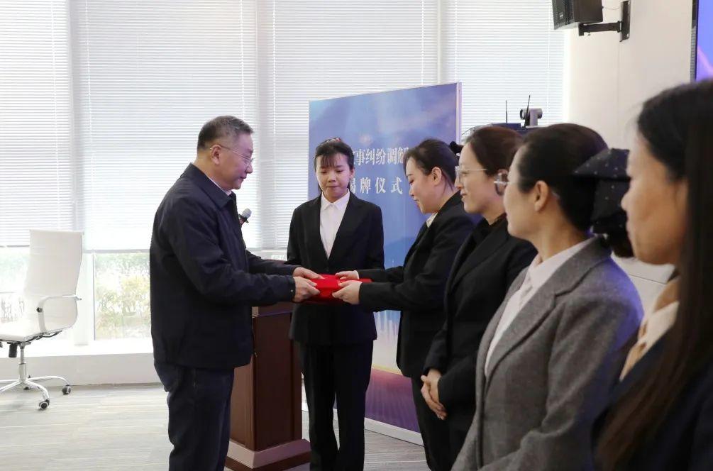 揭牌仪式上,曹波为5名家事纠纷调解员颁发了聘书。