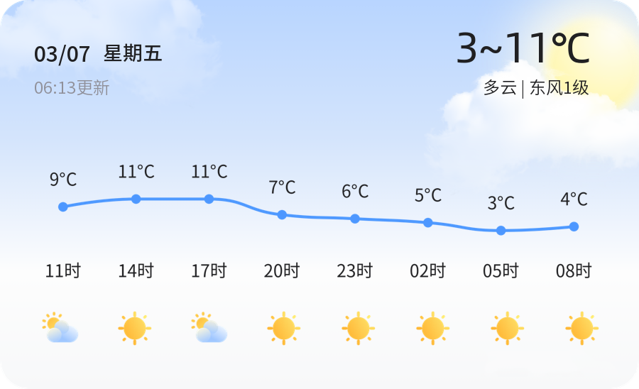 【AI天气】菏泽今日多云气温3至11度,明日转晴适宜出行