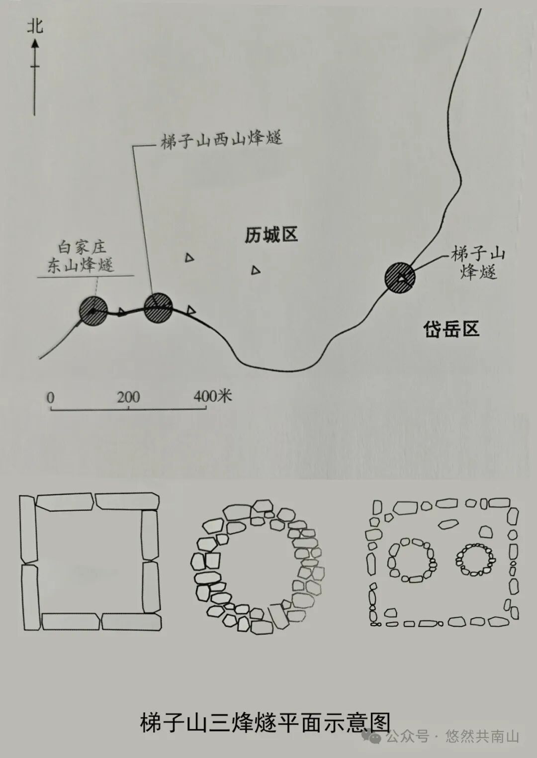 西营境内长城岭上应该不止有集中在梯子山上的三处烽燧,在南天门、大高尖山、四界首东天罗顶的最高处也应设有烽燧,以便于迅速传递信息。遗迹无存的原因,有可能是其上均系裸露的岩石,无法挖烽燧坑,只能用石块垒砌于地表,没有地基,易于损毁的缘故。