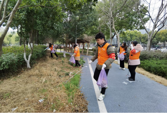 (阳光人寿江苏分公司志愿者清扫河道公园)