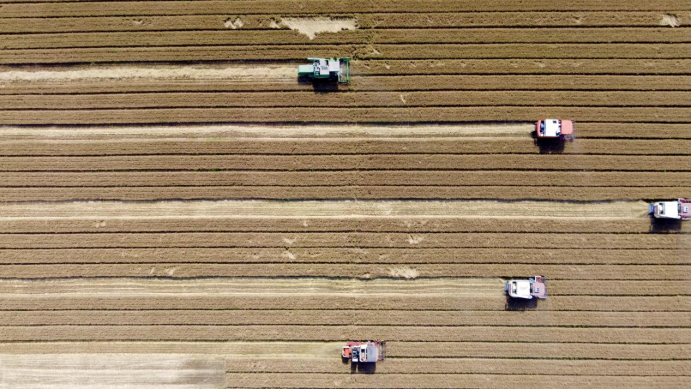 田垄的消失,是安驾庄镇现代农业变革的缩影。传统耕作中,30 厘米宽的田垄占用10%左右的耕地,如今通过微喷带、航架式喷灌等新技术,10万亩粮田实现“去垄平作”,提高了有效种植面积,实现年增产粮食2000余万斤。“去掉的是田埂,增加的是效益。”“一块田”顾问张宁宁算起经济账:“去年小麦亩产1416.5斤,比传统种植增产20%,节水节肥成本每亩节省100多元。”