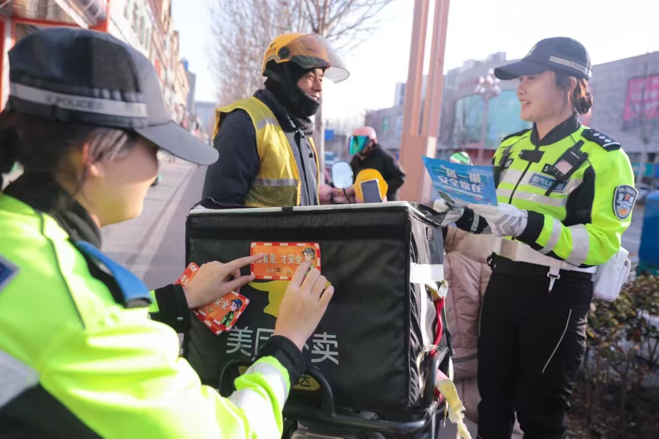 “你好,这里不能停车,请马上驶离。”“帅哥,你的头盔呢,请把头盔带上!”“阿姨,看您电动车没有尾灯,夜间行车不安全,赠您一张反光车贴”……除了“高峰岗”、“护学岗”执勤,耿文静与队友巡逻在街头巷尾,发现市民出现轻微交通违法时,不时“喊话”,发出“温柔警告”,劝导市民遵守交通规则,文明安全出行。