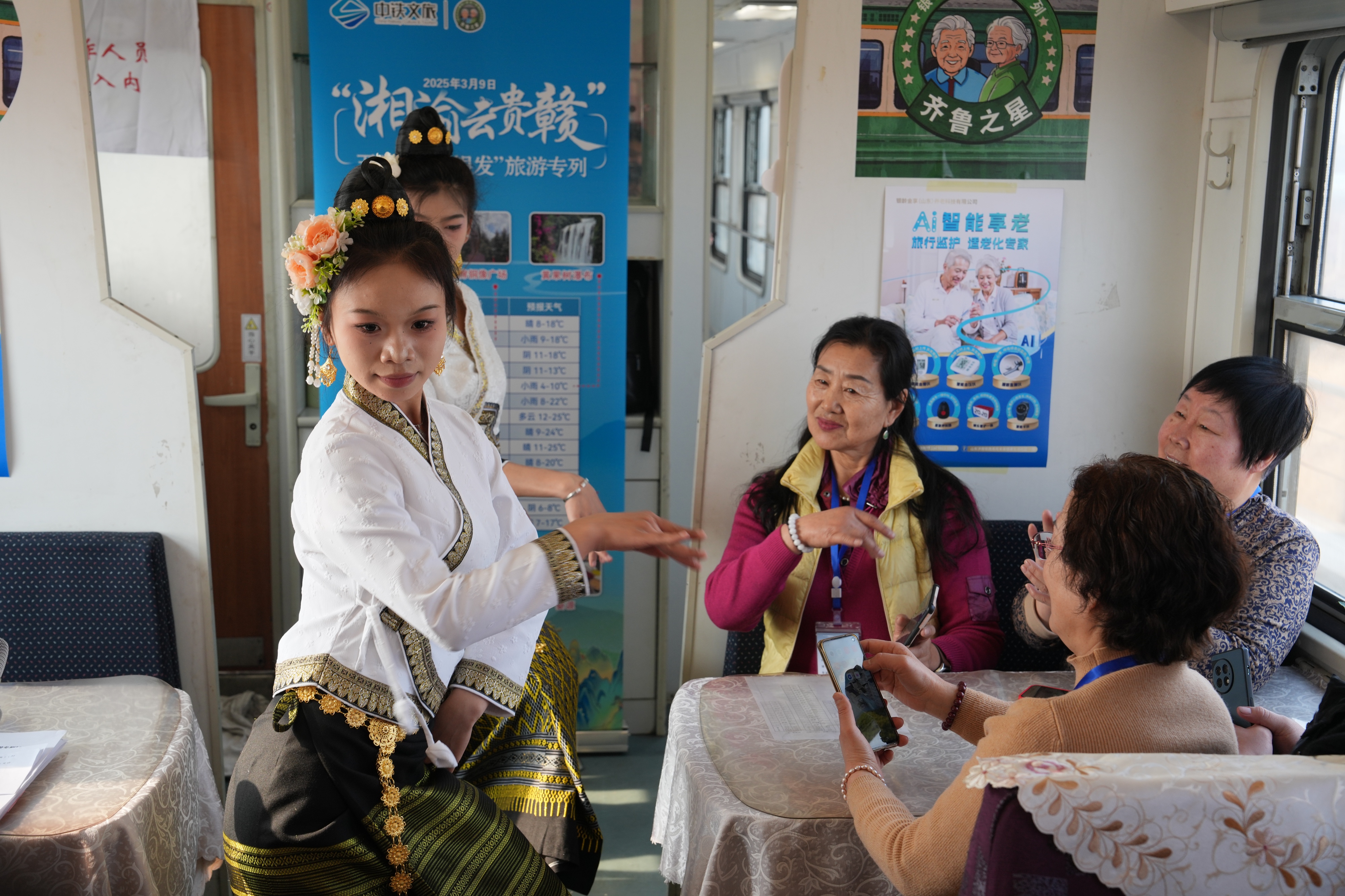 银发专列,顾名思义是针对老年群体设计的全链条适老化旅游列车,以“慢节奏、深体验、强保障”为核心理念。硬件层面,全列空调卧铺车厢标配防滑扶手、紧急呼叫系统、无障碍通道等设施,部分车组加装医疗室与智能健康监测设备,构建“安全出行”基础防线。服务层面,铁路部门联合医疗机构配备随车医护团队,科学规划行程节奏,避免高强度游览。更深层次的创新在于文化体验设计:车厢内嵌入非遗制作、书画创作等互动活动,行程中融入伟人故里探访、民俗深度体验等项目,满足老年群体对精神文化生活的追求。