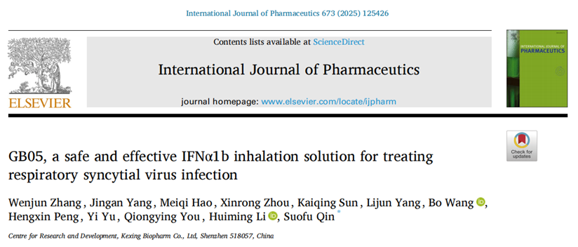近日,科兴制药(股票代码:688136)在《International Journal of Pharmaceutics》国际学术期刊上发表GB05项目人干扰素α1b吸入溶液的临床前研究,从安全性、有效性、药物经济学等方面公布研究数据。