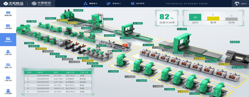 引入轻量MES系统,赋能制造企业订单翻番。对于传统机械制造业而言,生产管理较多依赖人工记录与纸质单据,信息传递滞后,生产计划常因物料供应不及时、设备故障难、不及时察觉而延误,订单交付周期漫长,市场竞争力大打折扣。山东移动精准施策,为山东天辰机器引入轻量化MES系统,借助“小快轻准”产品体系中的“一张网”“一朵云”,实现数据实时流转、数据深度存储与分析。该系统能实时监控生产进度,物料短缺与设备异常情况自动预警,生产流程一目了然。项目应用后,企业订单交付周期缩短一半,质检从无序等待变为有序可控,质检效率提升40%,库存积压减少10%,助力生产效率大幅提升。