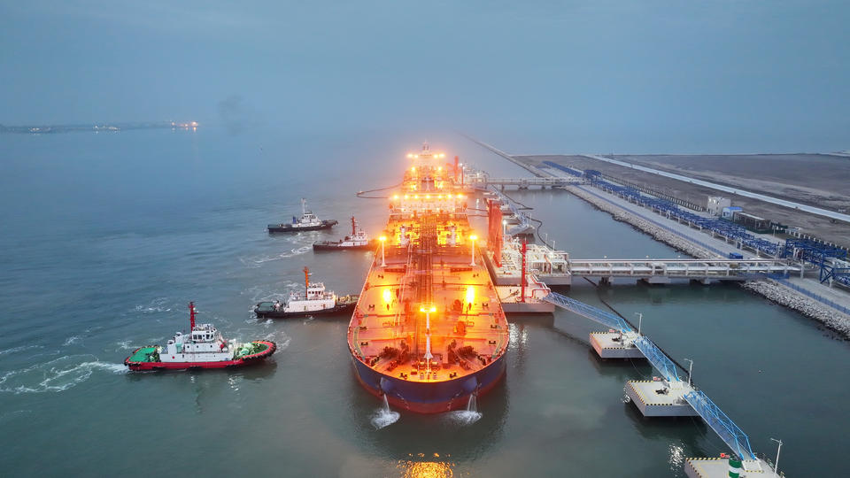 东营港这座黄河入海口北侧的新兴大港,一面通过海洋连接着全球,将世界各地的石油、矿产等资源源源不断“吸纳”到黄河入海口这片共和国不断生长的土地上;一面连接着华北和黄河流域,通过“管道通全市、公路通全省、铁路通全国”的公铁海管多式联运体系,为黄河流域和华北地区优势产业走向全球,逐梦深蓝,打通了沿黄达海的重要通道。(大众新闻记者 郝文杰 视频 赵士伟)