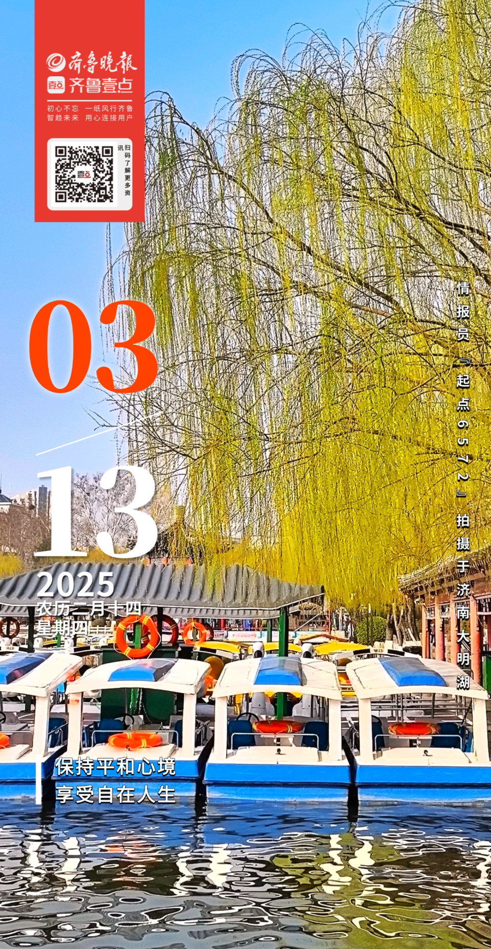 春日的济南大明湖景致如画,湖畔垂柳依依,细长的柳枝随风轻拂,宛如绿帘摇曳。不远处,几株梅花玉兰肆意绽放,红白相间,与翠绿柳枝相互映衬,尽显生机勃勃,绘就了大明湖独有的春日盛景。