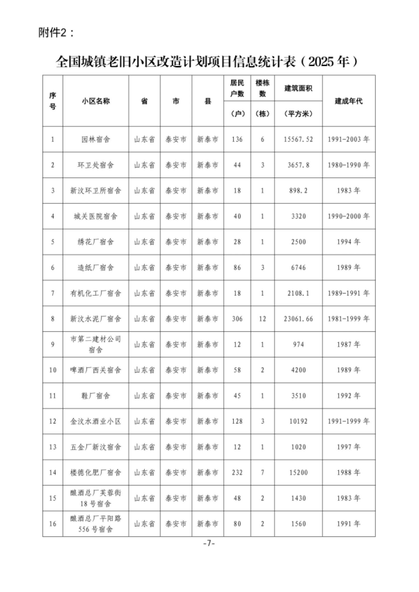 2. 全国城镇老旧小区改造计划项目信息统计表(2025年)