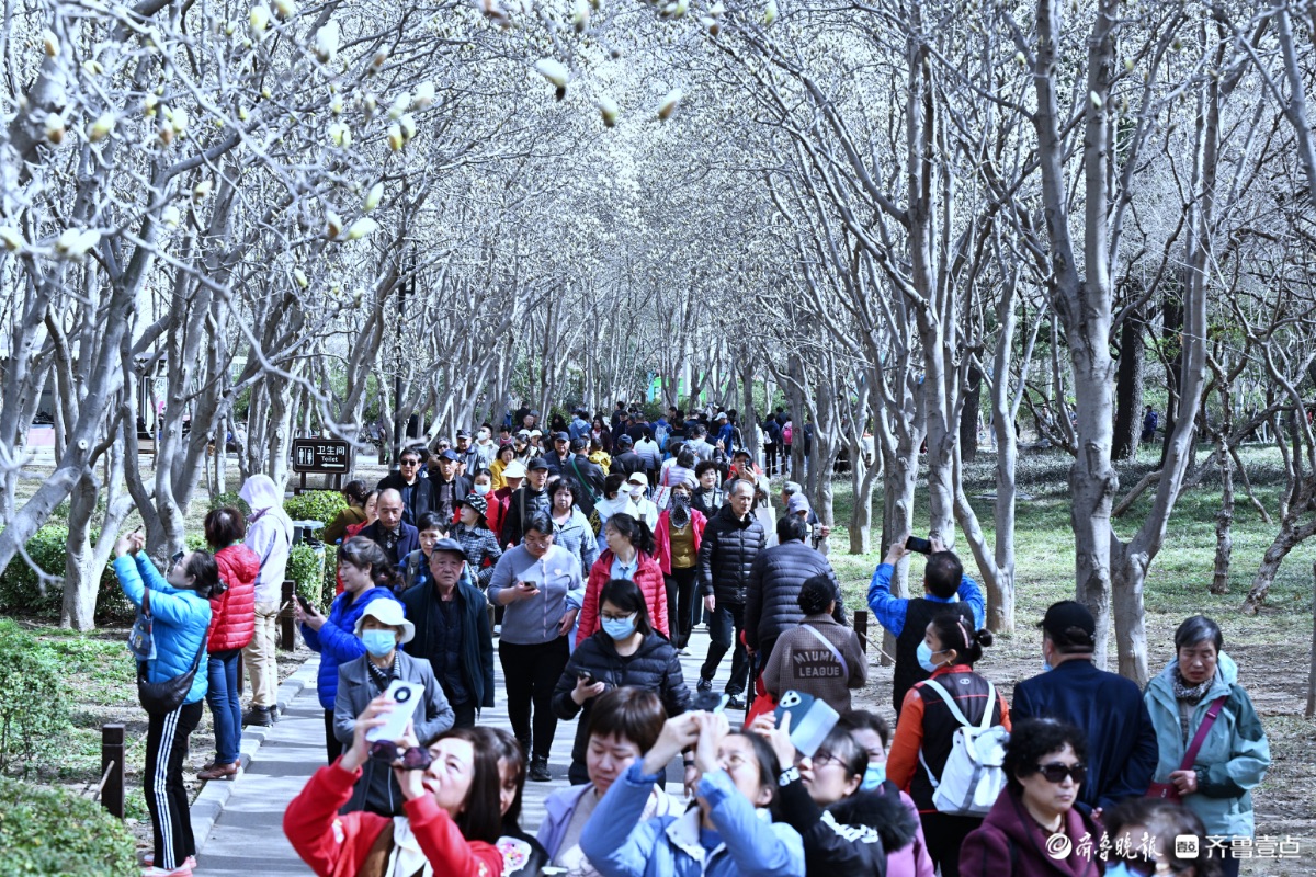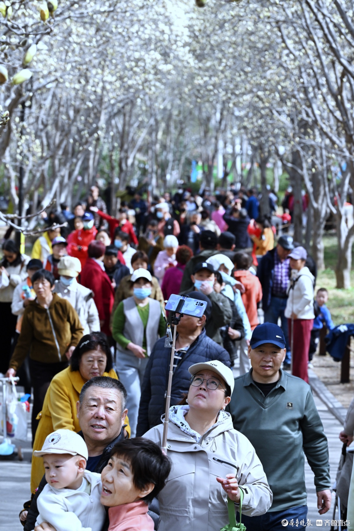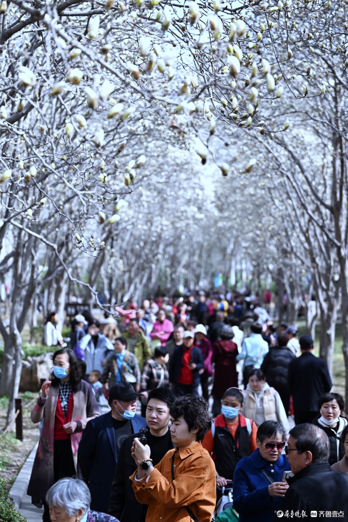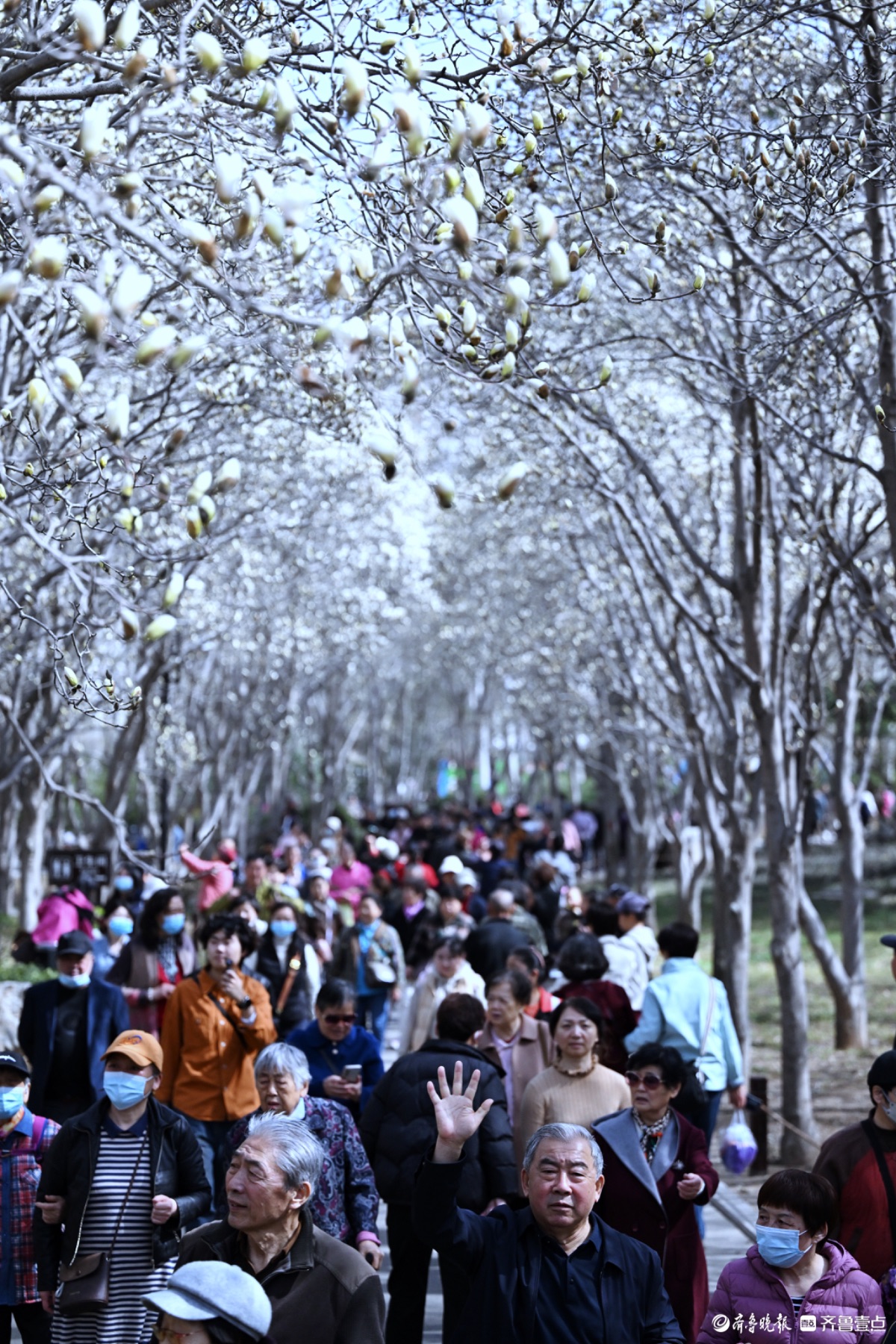 济南百花公园“玉兰大道”迎来盛花期,市民争相打卡