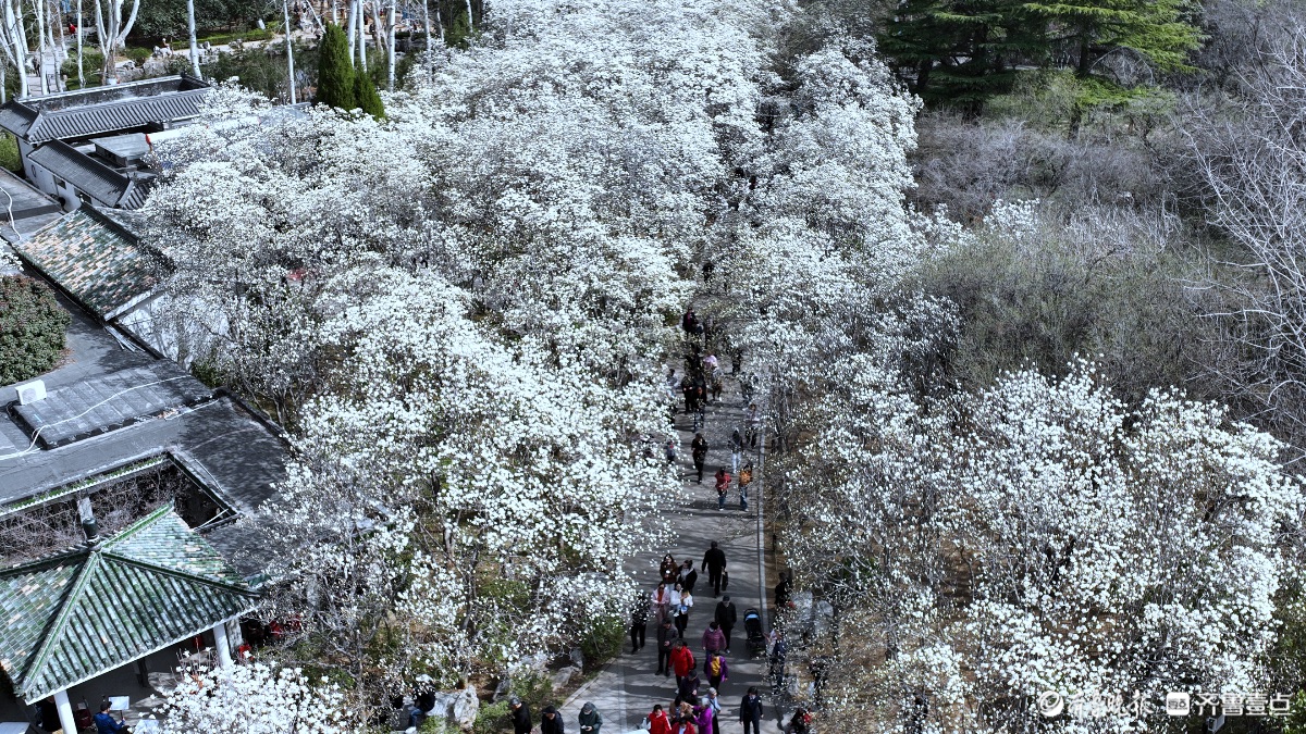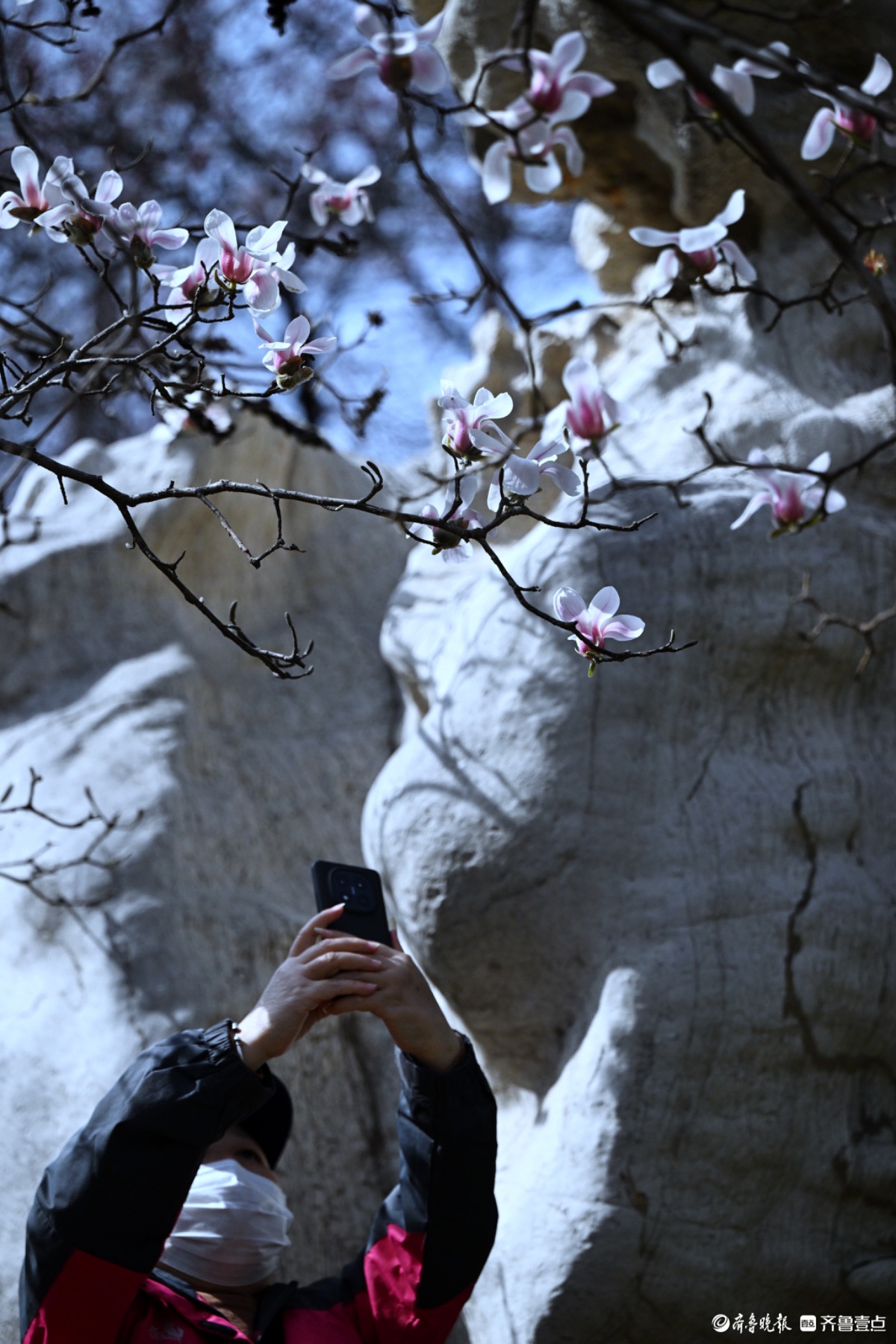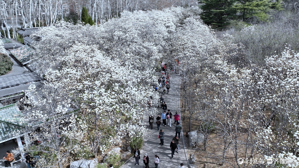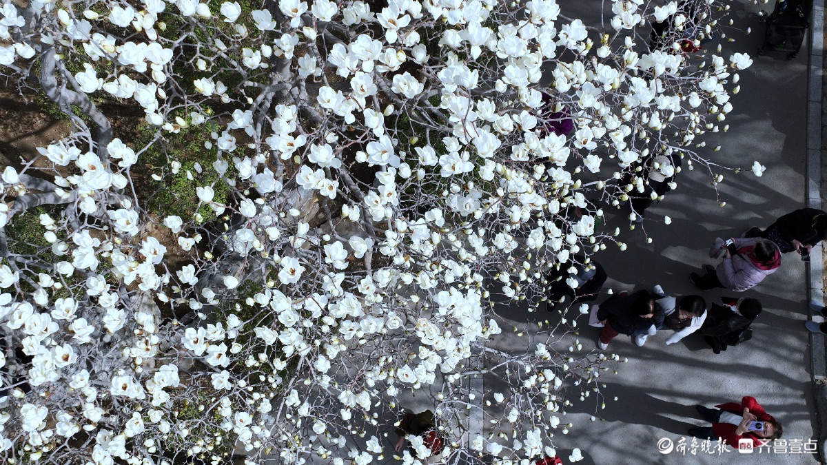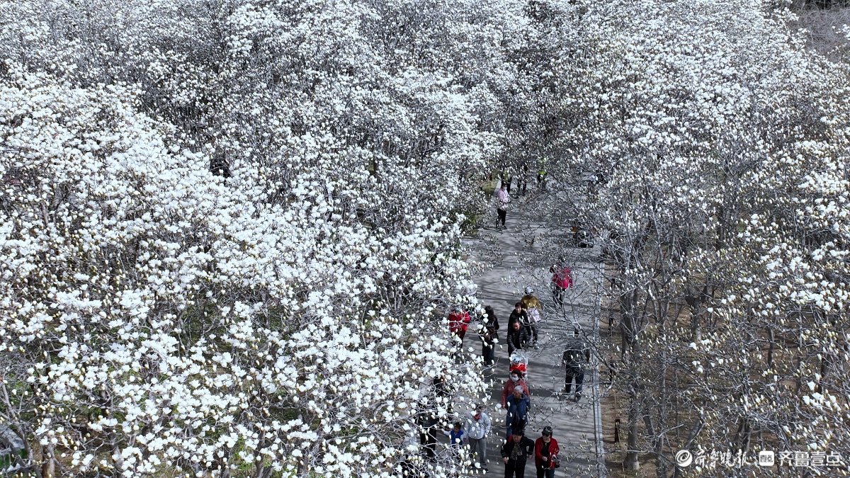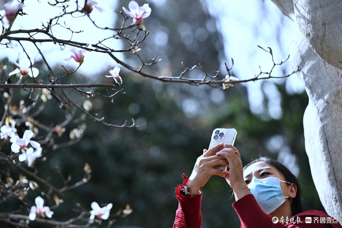 济南百花公园“玉兰大道”迎来盛花期,市民争相打卡