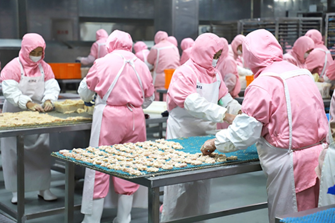 3月13日,位于张家楼街道的青岛亚鲁特食品有限公司(以下简称“亚鲁特”)生产车间内,生产线有序运转,工人们身着整洁的工作服,在各自的岗位上分拣、称重、打包,一派繁忙生产景象。