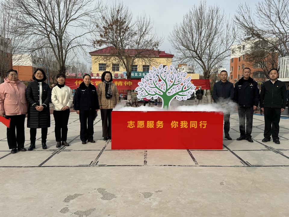 随后,新和工作区主任、东营市中医院、胜东老年站、胜东派出所以及瑞盛社区等共建联建单位共同参与了一个极具意义的环节——浇灌象征志愿精神的“志愿树”。这一行动寓意着雷锋精神将在社区深深扎根、茁壮成长,激励着更多居民投身到志愿服务中来。