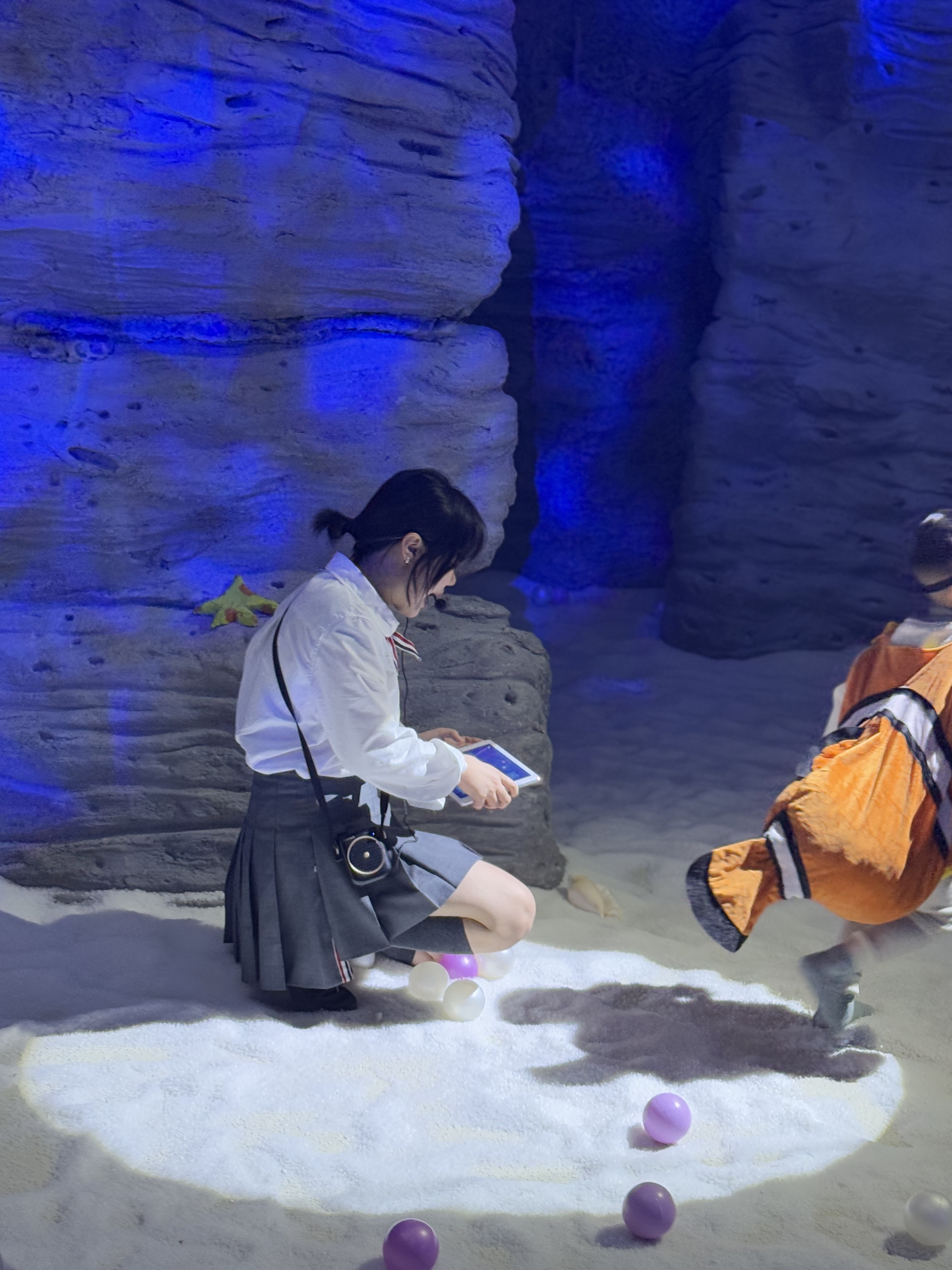 在彭老师的悉心陪伴下,牛牛慢慢融入了课堂,积极参与“海洋主题AI教室”的互动环节和其他小朋友们一起完成了趣味满满的海底探险课程。课程结束后,牛牛的脸上露出开心的笑容和其他小朋友一起合影留念。