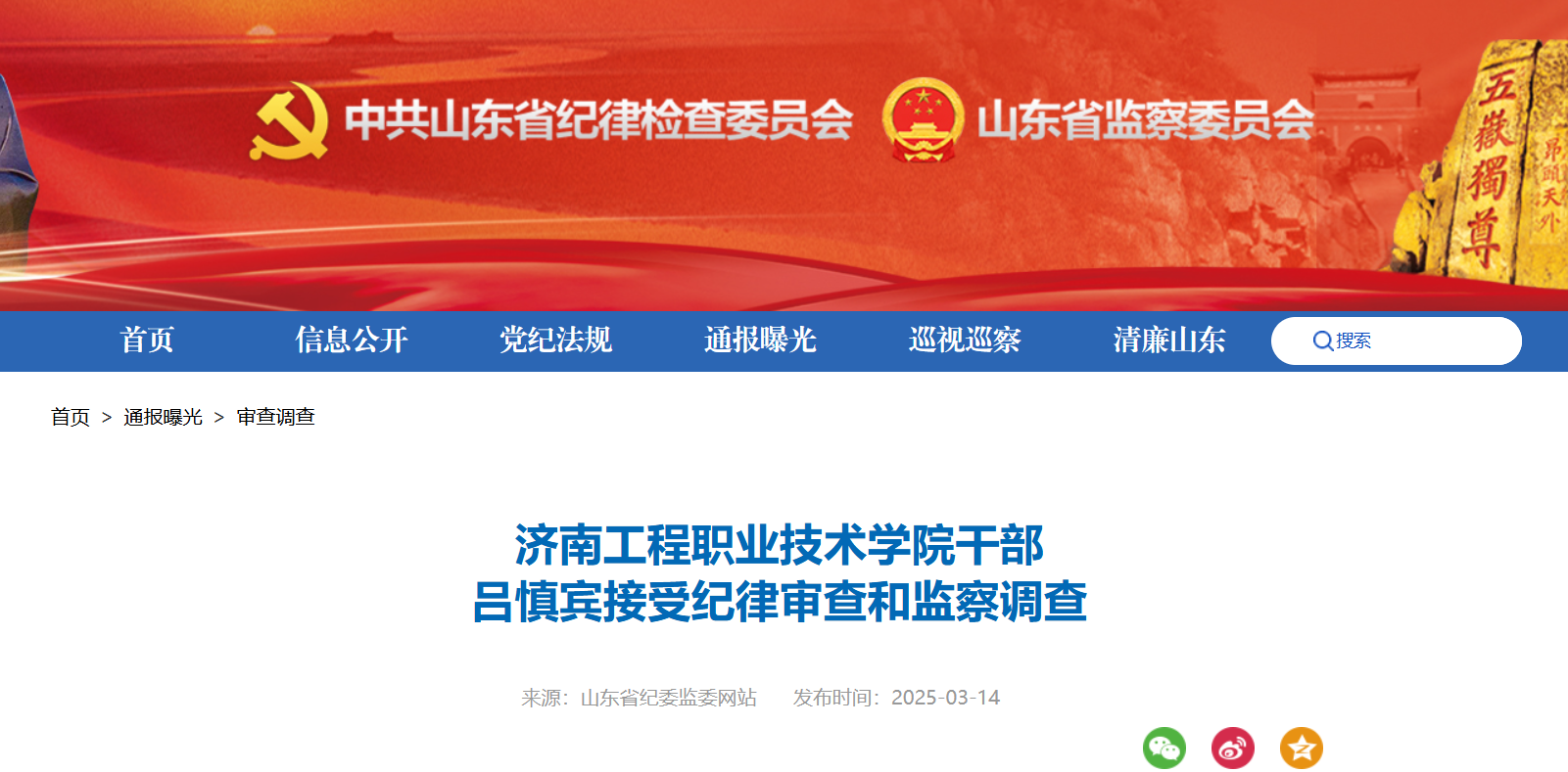 山东省纪委监委网站3月14日通报,济南工程职业技术学院干部吕慎宾(享受市管副职待遇)涉嫌严重违纪违法,目前正接受济南市纪委监委纪律审查和监察调查。