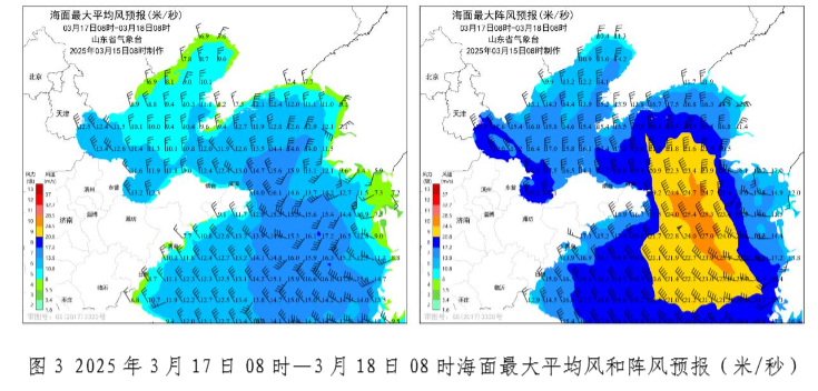 17日白天到夜间,潍坊北部和半岛地区天气阴局部有小雨雪转多云,其他地区天气晴间多云。北风,滨州、东营、潍坊、日照、内陆湖面和半岛地区5~6级阵风7~8级,其他地区4~5级阵风6级。夜间最低气温:鲁中山区-3℃左右,其他地区-1℃左右,最高气温:鲁中山区和北部沿海地区10℃左右,其他地区14℃左右。未来三天海洋天气预报