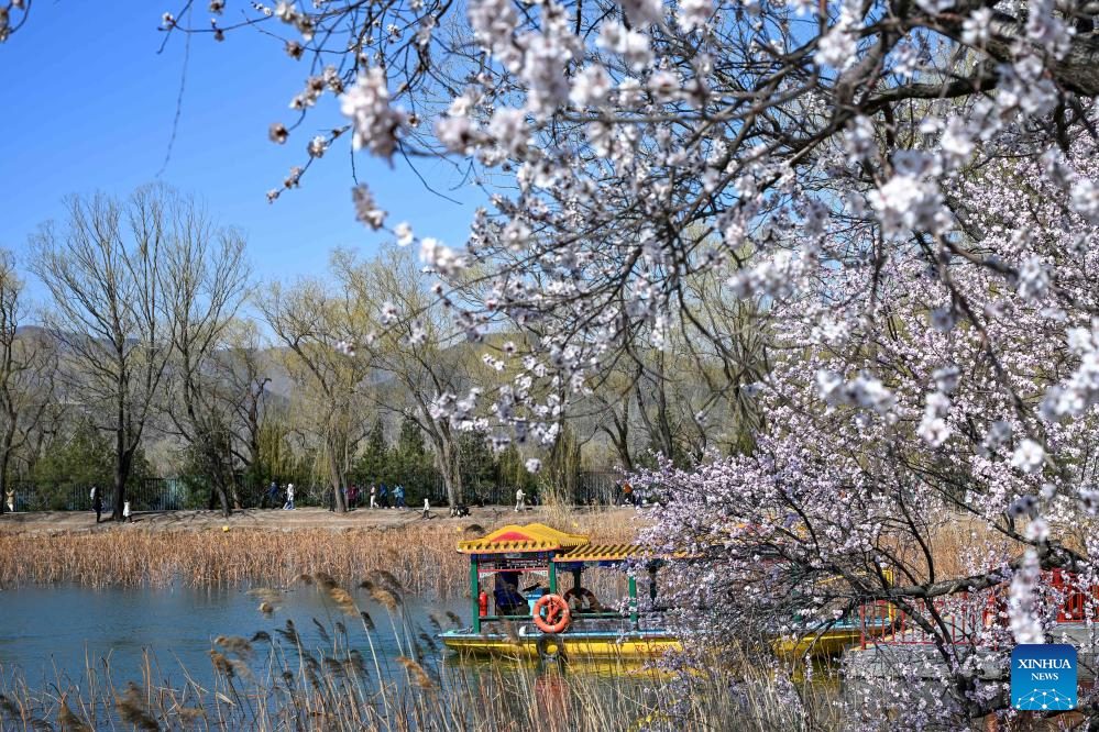 Tourists go boating at the Summer Palace in Beijing, capital of China, March 16, 2025. As the spring season is coming, flowers are in full bloom across the country. (Xinhua/Zhang Cheng)