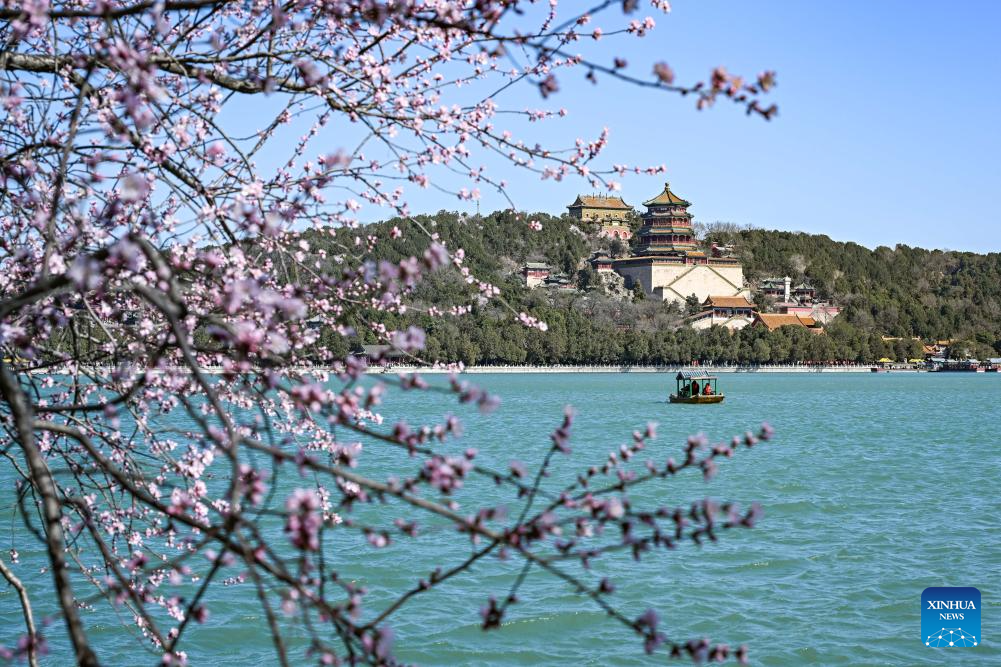This photo taken on March 16, 2025 shows blossoms at the Summer Palace in Beijing, capital of China. As the spring season is coming, flowers are in full bloom across the country. (Xinhua/Zhang Cheng)