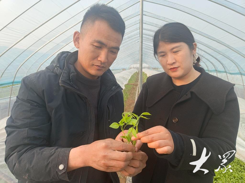 沈庄村村民王龙和刘肖夫妇,在本村承包了100亩地,从事辣椒育苗行业。