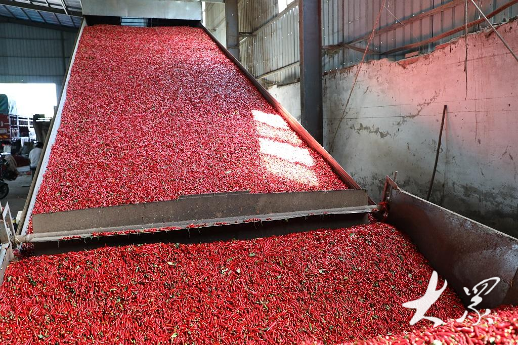 在产业链另一端,1996年出生的陈浩,管理着海缘农贸发展有限公司,主要从事辣椒加工和品牌化销售,“我们采用先进的辣椒烘干设备和技术,能够快速高效地将新鲜辣椒烘干。鲜辣椒的清选、烘干、剪把、筛色也在逐步实现自动化,保证辣椒的品质和口感。”