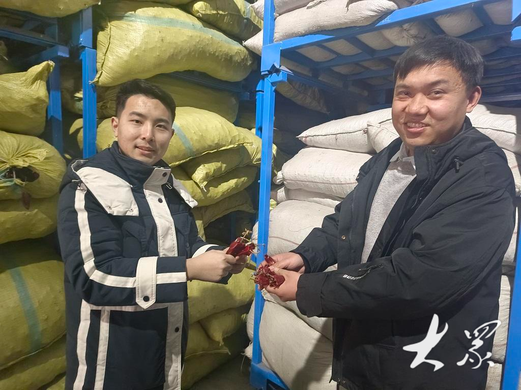 济宁辣椒协会副秘书长、26岁的张金笛(左)和海缘农贸发展有限公司总经理陈浩。