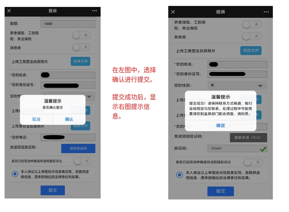 第三步:填写投诉诉求(举报的填写流程类似,主要区别为投诉必须实名才能针对性调查解决您的诉求。举报可以选择匿名。)