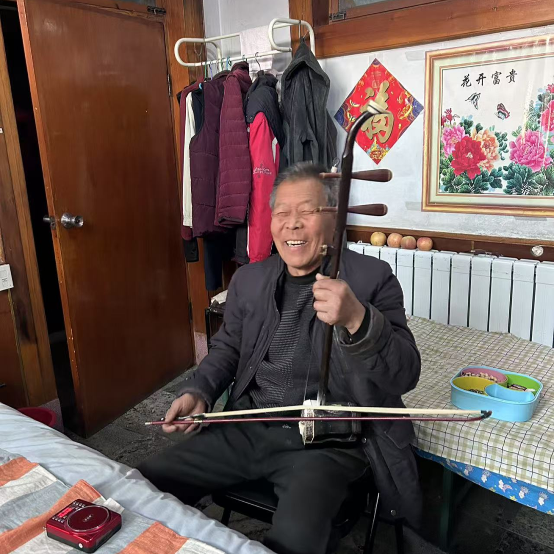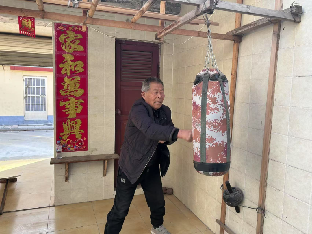 他还是一位“健身达人”。因为早些年学过木匠,朱克忠便在自家的小院做了一些健身器材,有篮球架、仰卧起坐辅助器、沙袋等。每天早上起床后,他都会适当地进行锻炼,68岁的他看起来非常硬朗。与此同时,朱克忠还自学了二胡和小提琴,《梁祝》《在那桃花盛开的地方》都是他的拿手曲目。