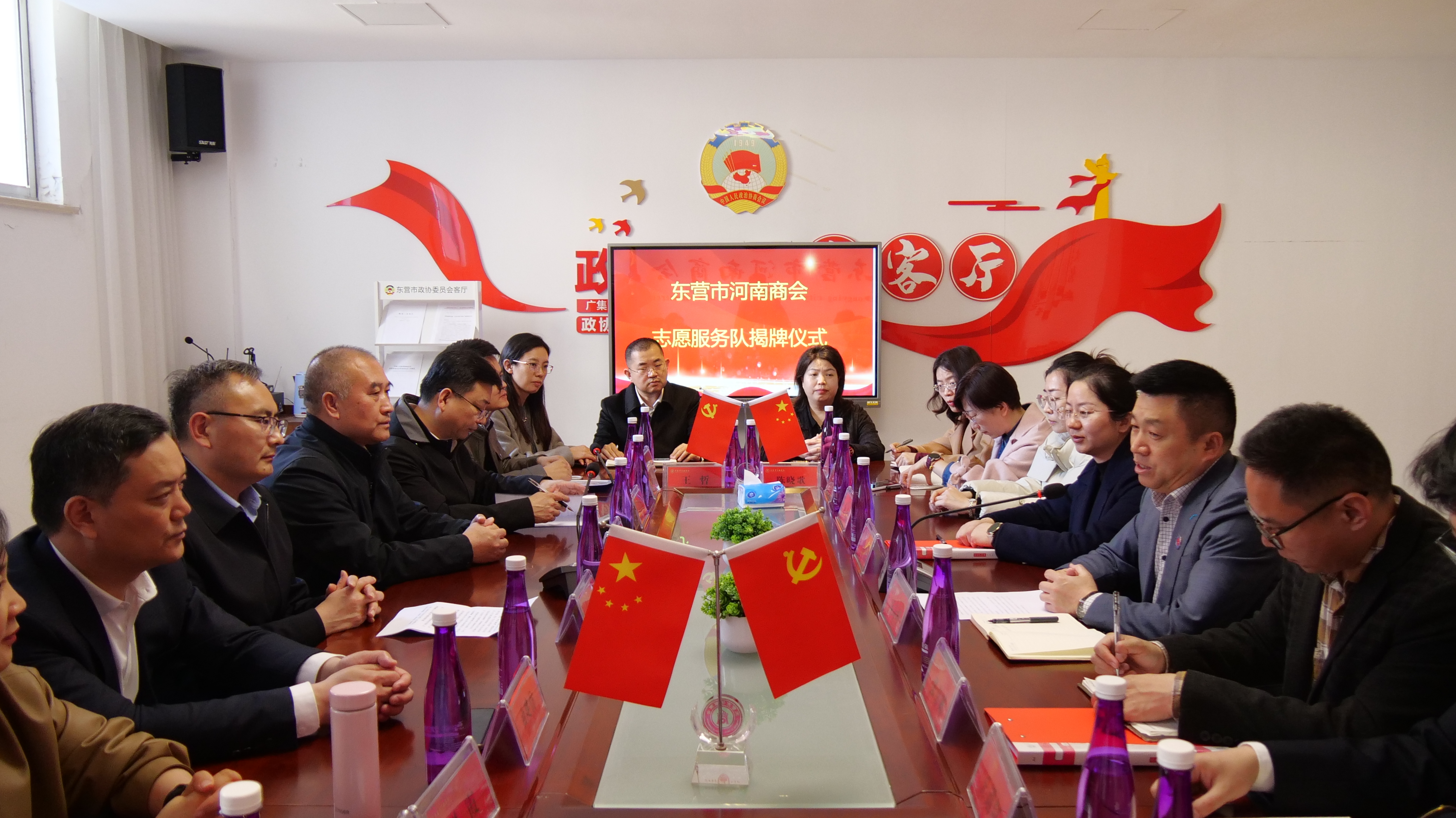 3月19日,在市委社会工作部、市工商联共同见证下,东营市河南商会志愿服务队揭牌成立。现场,商会与东营区黄河路街道签订共建协议,发布“屋檐下的承诺”老旧小区防水志愿服务项目。