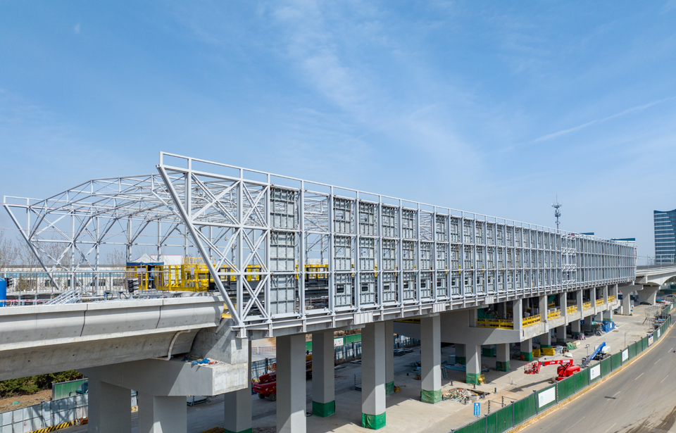 为了绿色低碳环保,8号线8座高架车站披上GRC幕墙“新衣”,较传统混凝土幕墙,单座车站可减排二氧化碳约266吨、工期缩短约50%,高架段全面转入“精装修”阶段,向着通车目标疾驰。