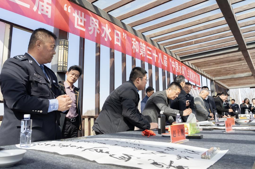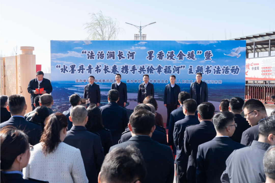 3月21日,在第三十三届“世界水日”和第三十八届“中国水周”来临之际,聊城黄河河务局联合聊城市人民检察院、聊城市司法局、聊城大学、山东法制报社和莘县党委政府在莘县黄河法治广场举办“法治润长河 墨香浸金堤”主题书法活动。活动以普法宣传与书法艺术深度融合的形式,展现黄河保护治理成果,推动法治文化阵地建设,为黄河流域生态保护和高质量发展注入新动能。聊城市司法局党组书记、局长杨国强,聊城市人民检察院党组成员、专职检察委员会委员杨茂宏,山东法制报社长、总编辑赵衍军,聊城黄河河务局党组书记、局长刘滨,莘县县委副书记、县长张云生及中国美术家协会上海创作中心主任周传玉、聊城市书法家协会副主席刘胜民、聊城日报社新闻书画院院长陈同龙等出席活动。
