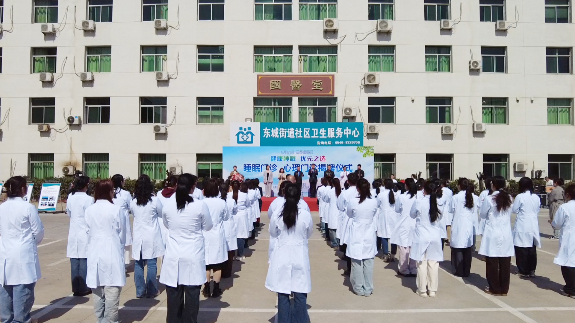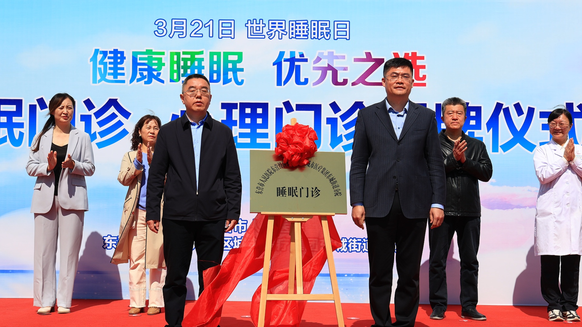 在第25个世界睡眠日来临之际,3月21日,东营市人民医院东营经济技术开发区城市医疗集团东城街道分院揭牌成立睡眠(心理)门诊。市卫生健康委东营开发区医疗卫生服务中心主任杨振东,市人民医院党委委员、副院长梁建晓,东营经济技术开发区党工委委员、东城街道党工委书记成新磊,城市医疗集团成员单位有关负责同志,共计80余人参加活动。