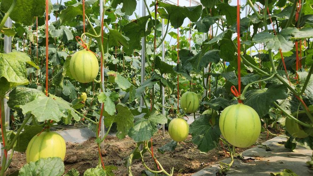 3月22日,三亚崖州国家现代农业(种业)产业园种植的新品种西甜瓜。新华社记者 郭良川 摄