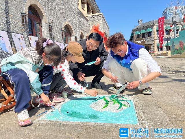 在涂鸦艺术创作环节,大学生志愿者带领青少年用画笔为栖霞街内的井盖“穿”上了新衣,大家绘制了地球、绿植等图案,吸引了路人的目光。威海职业学院艺术学院大一学生潘广慧是第一次走进栖霞街。“街区很漂亮,很有韵味,和小朋友们一起参加这样的社会实践活动,我觉得非常充实。”她说。
