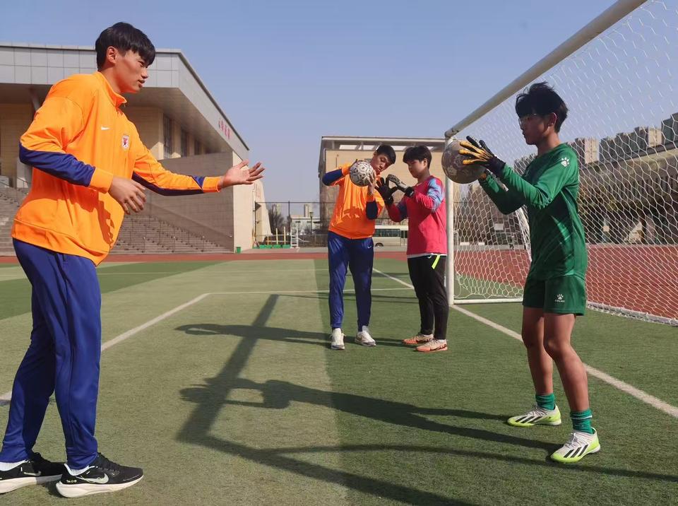 山东省体育记者协会及体育记者足球联队代表,向学校足球队捐赠了比赛服、足球、跳绳等装备、器材。