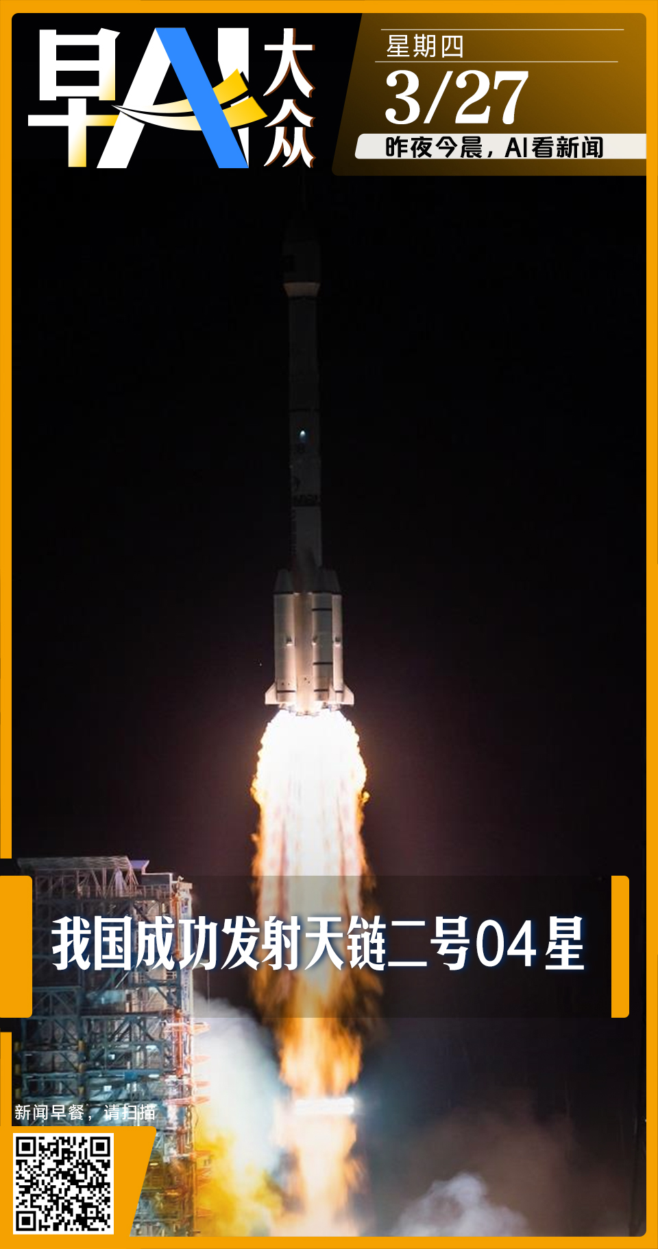 早AI大众|我国成功发射天链二号04星;美将对进口汽车征收25%关税
