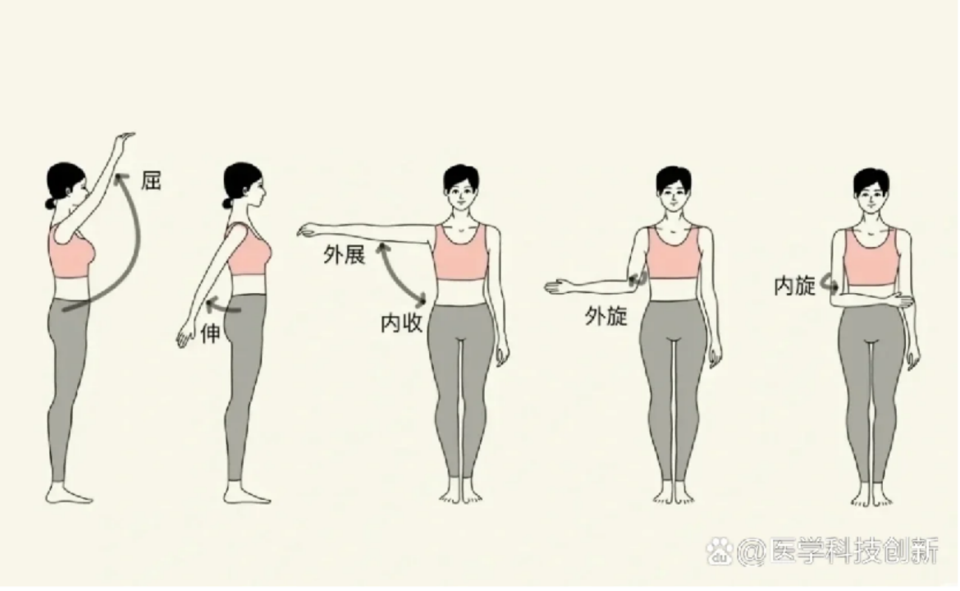 肩关节可以通过屈伸、外展内收、外旋内旋等增加肩关节活动度。