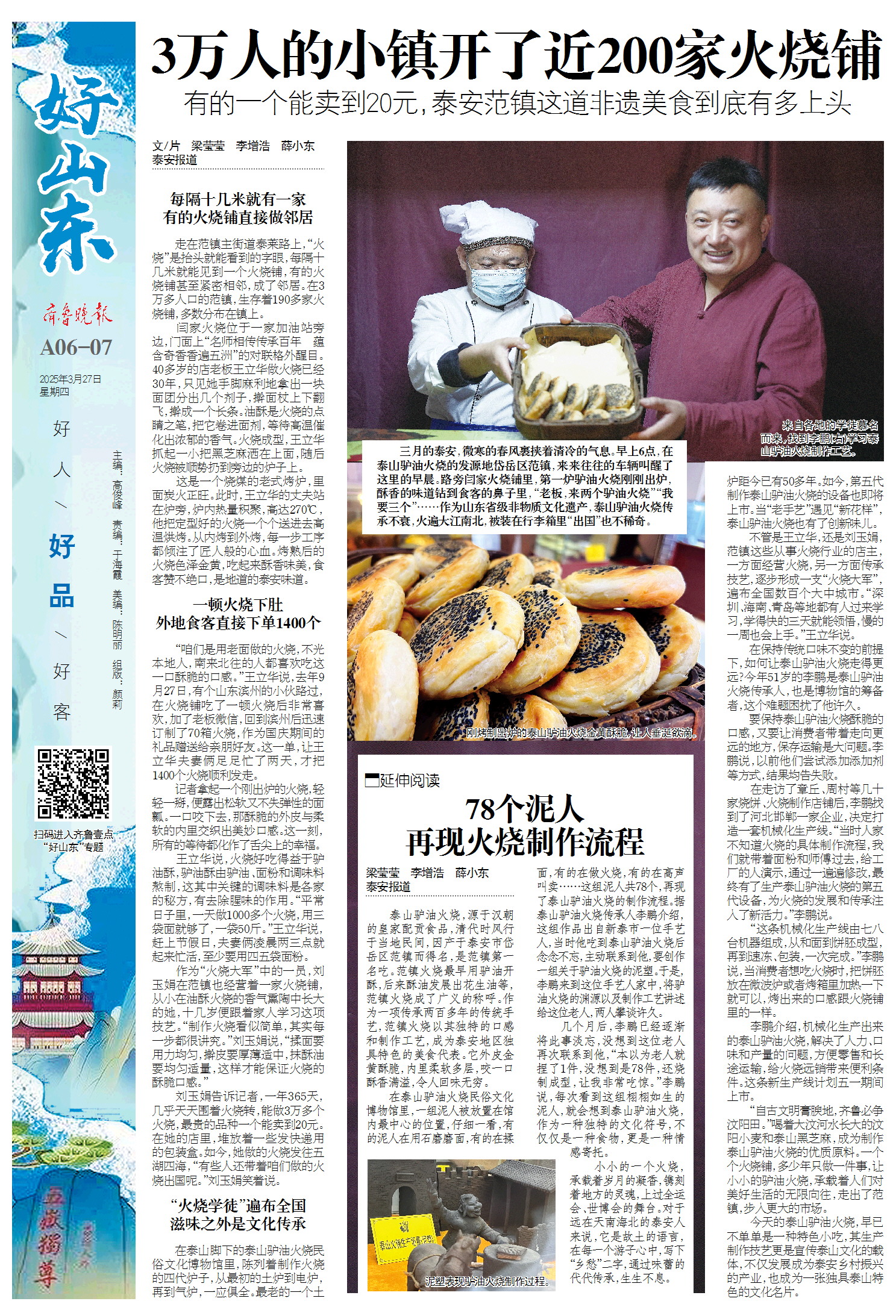 小小的一个火烧,承载着岁月的凝香,镌刻着地方的灵魂,上过全运会、世博会的舞台。对于远在天南海北的泰安人来说,它是故土的语言,在每一个游子心中,写下“乡愁”二字,通过味蕾的代代传承,生生不息。