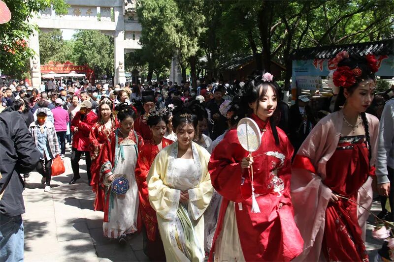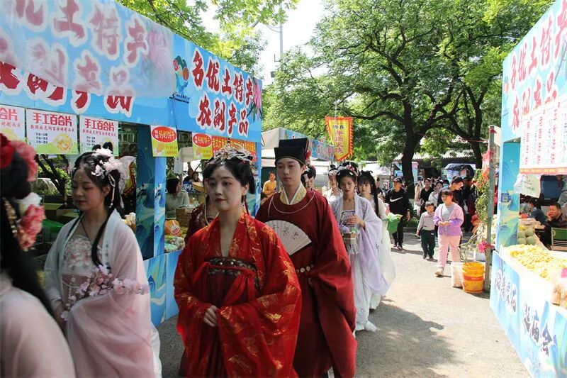 花神巡游:主山路上衣袂翩跹!汉服舞者携团扇、纸伞漫步桃林,与古建飞檐、热闹市集共绘“穿越千年的春日长卷”。