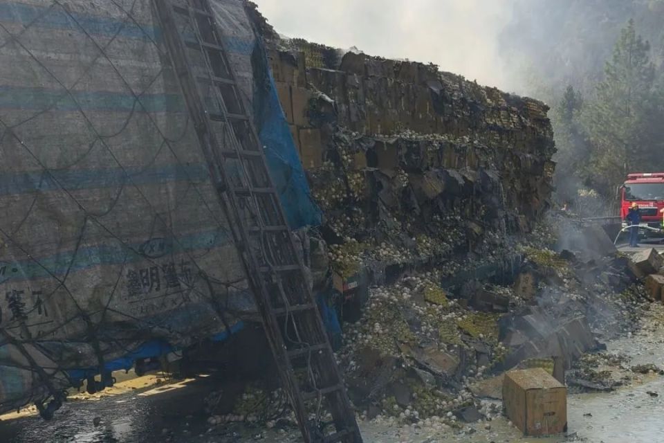 经过14分钟紧张扑救,17时50分明火被完全扑灭。“为防止复燃,我们对车体进行持续降温处理,并使用对货物堆垛实施翻垛检查。”据消防员介绍,事故未造成人员伤亡,车载货物为青板大理石,经过现场处理,成功挽救司机20余万元损失。经现场初步判断,由于该货车在下坡路段长时间制动,导致车轮起火,造成此次火灾事故。10分钟后,事故路段恢复单车道通行。