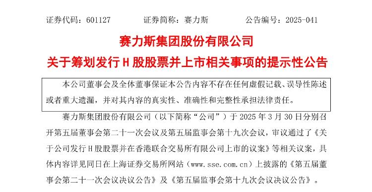 3月31日晚,赛力斯连发多条公告,披露2024年财报,并宣布拟筹划发行H股股票及在港交所上市。