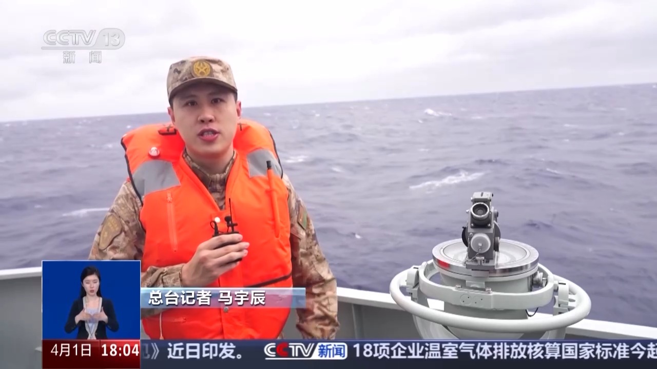总台记者 马宇辰:现在是4月1日上午7点30分,我正跟随海军益阳舰编队在台岛东部海域执行破限进逼与执法管控任务。今天海上能见度在5海里以上,浪高在3米左右,编队各舰艇正密切协同,按照战斗编组,全速破浪前进。