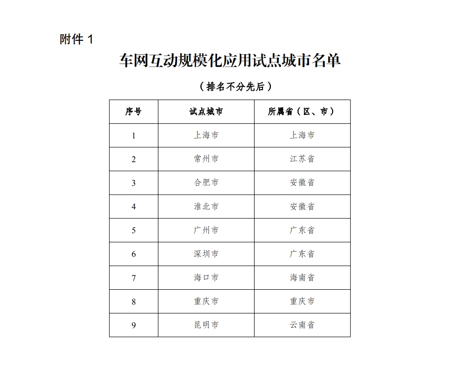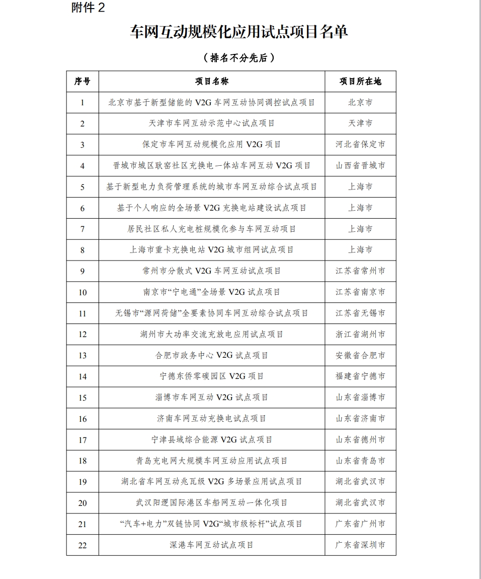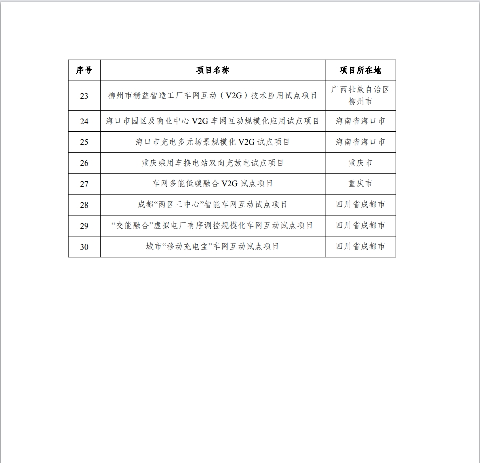 通知公布了首批车网互动规模化应用试点名单,并公布有关事项: