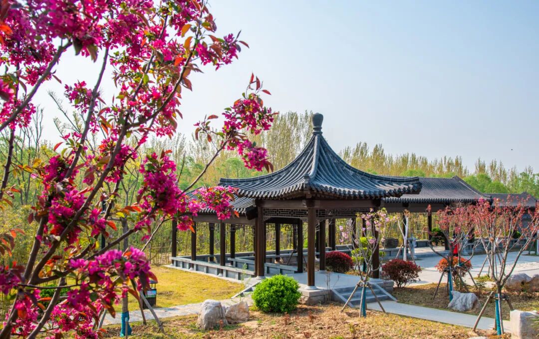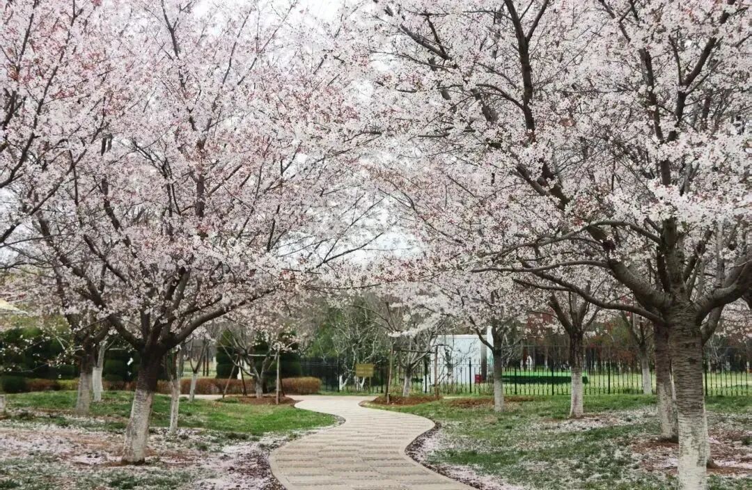 次日漫步「济水健身公园」,绿树繁花与健身步道相映成趣。「济北公园」,波光潋滟,柳树依依,春花烂漫、草木葱郁。
