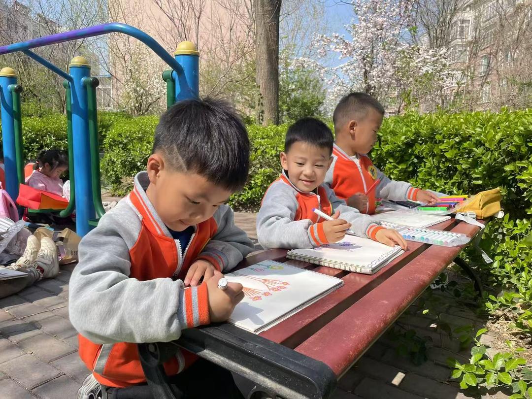 活动期间,孩子们在老师的带领下有序走进小区。他们好奇地观察着竞相绽放的花朵,感受五彩斑斓的色彩与扑鼻芬芳;蹲下身子仔细端详冬青叶,触摸叶片的纹理,发现春天带来的生机变化;还来到小菜地旁,辨认嫩绿的蔬菜,知晓春天是万物生长的季节。孩子们纷纷拿出纸笔,用画画、写生的形式,认真记录下自己眼中春天的独特模样。